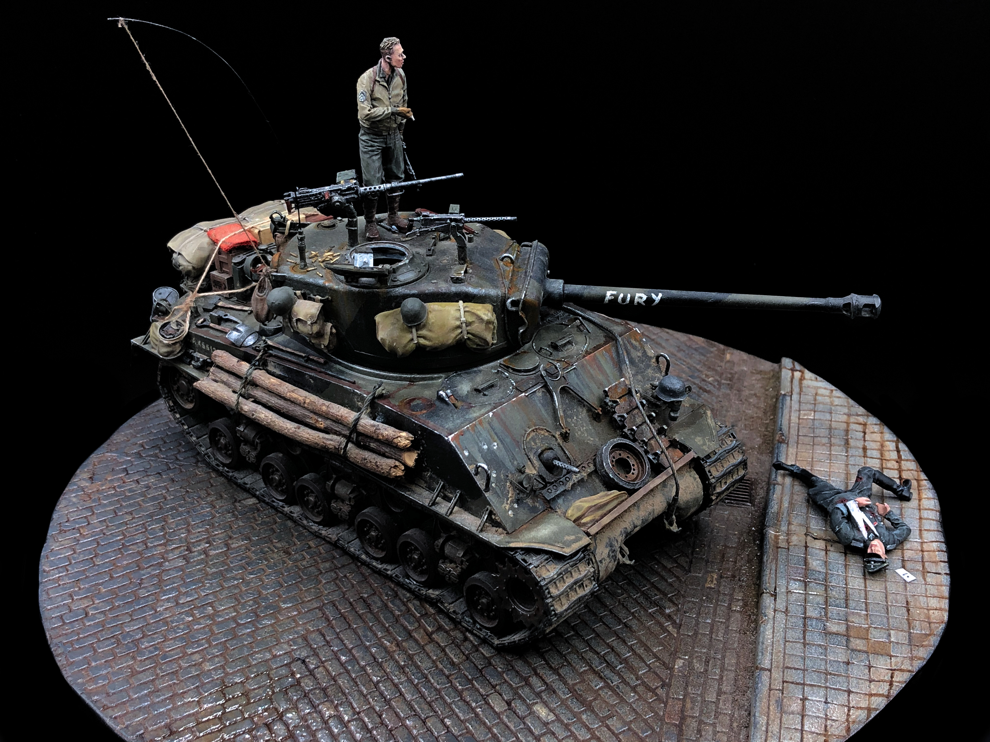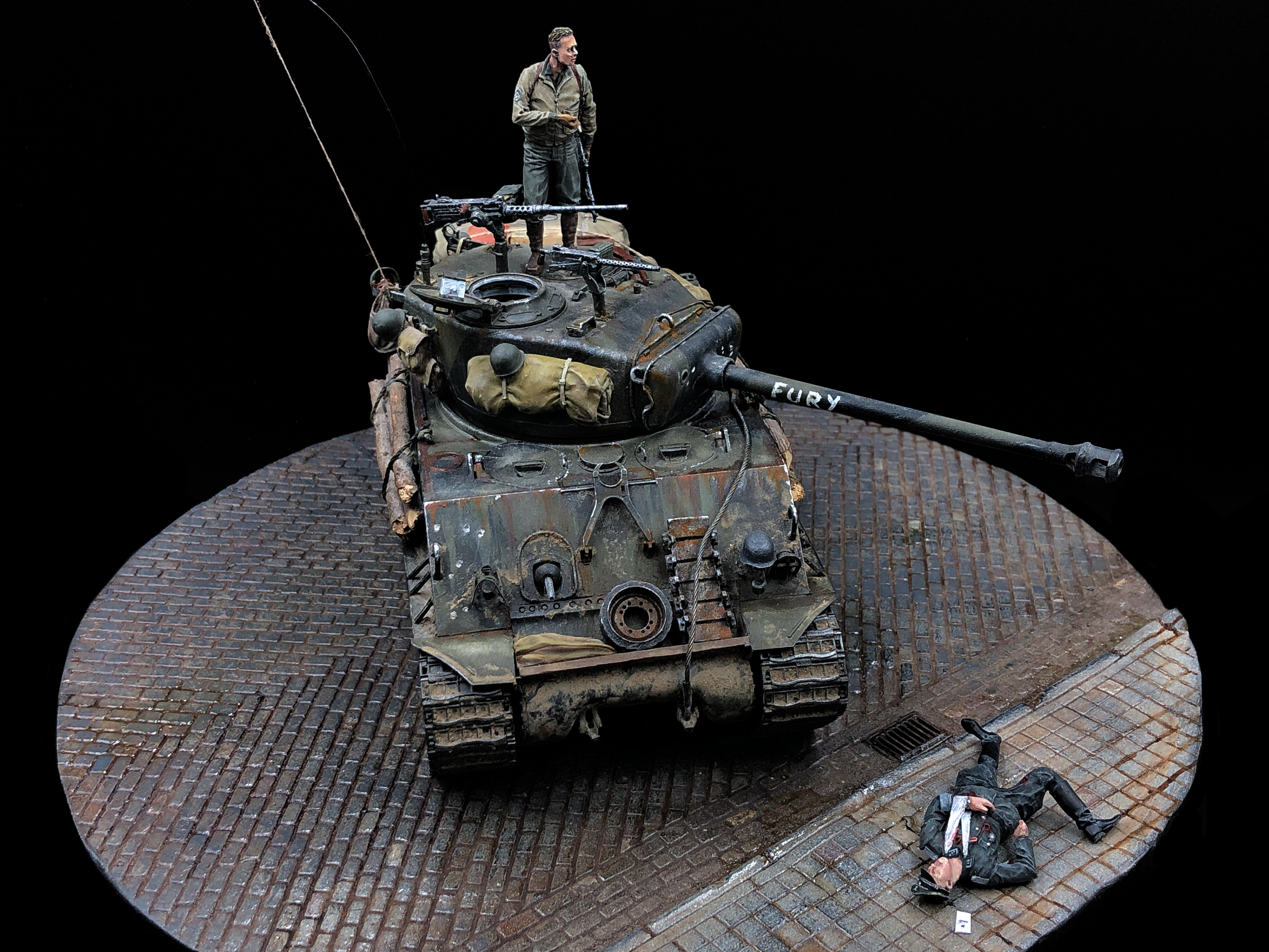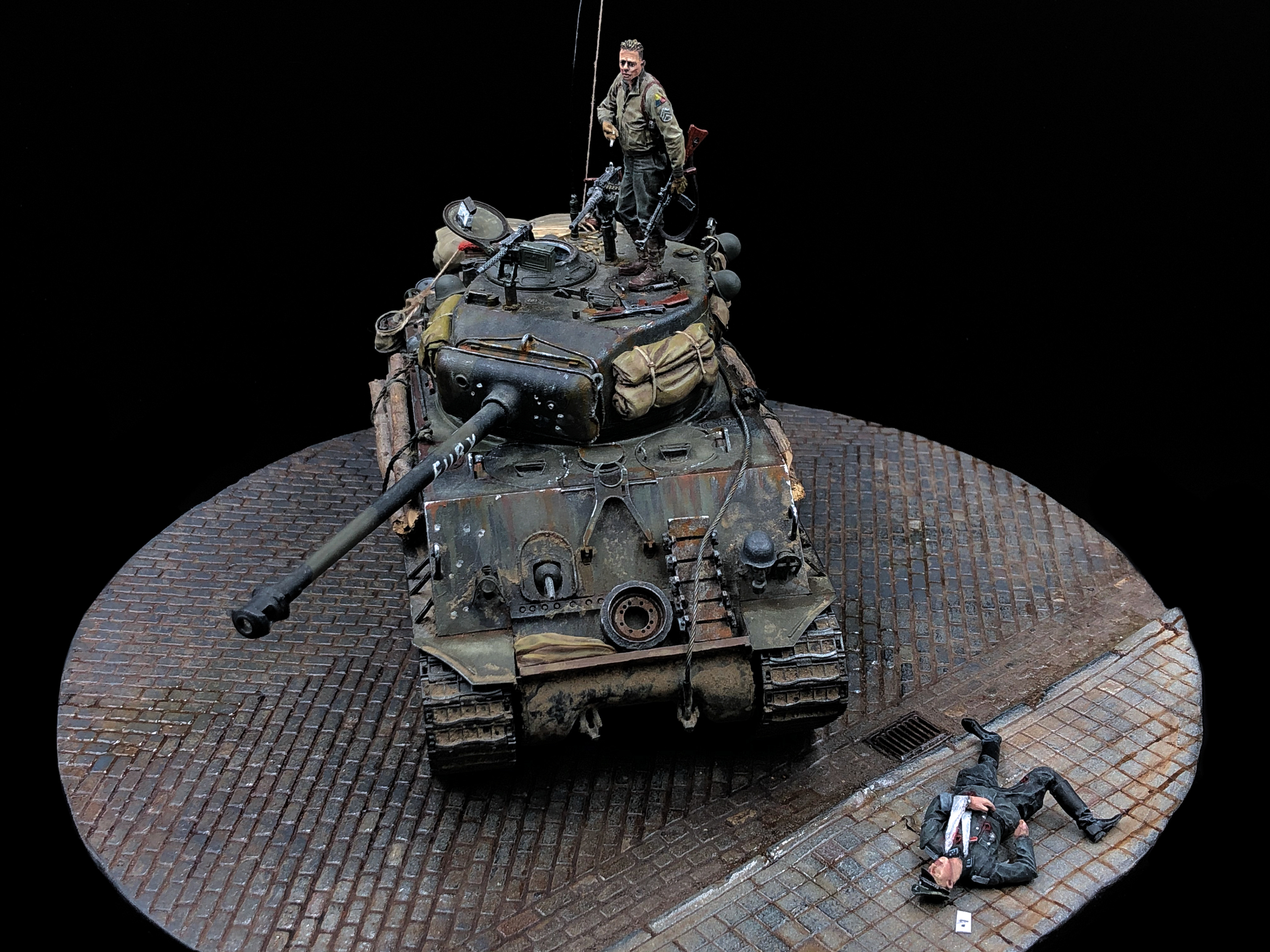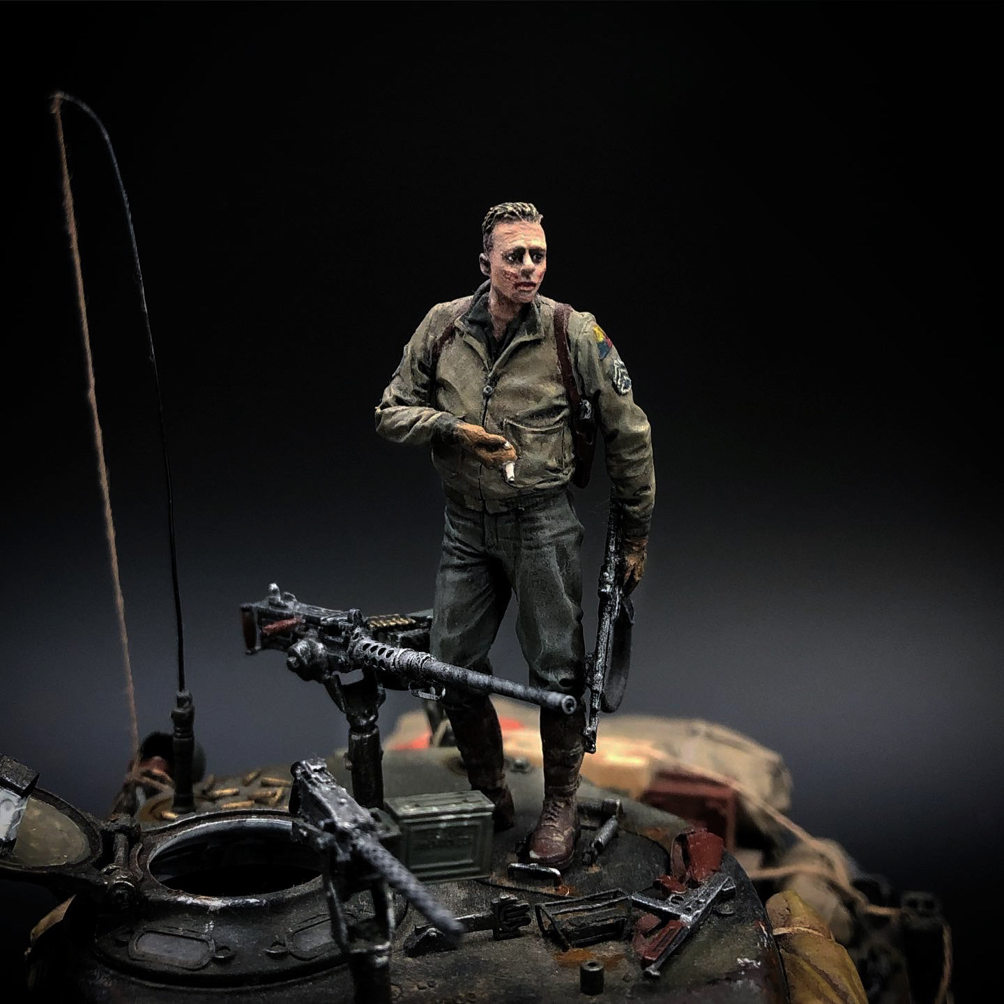 Vignette of an SS officer is executed on the spot in the occupied town square while the U.S. continue their advance into Germany during the final weeks of the war. Inspired by the iconic the scene from the 2014 movie Fury, directed by David Ayer, starring Brad Pitt, Shia LaBeouf, Logan Lerman, Michael Peña, Jon Bernthal, Jason Isaacs and Scott Eastwood.