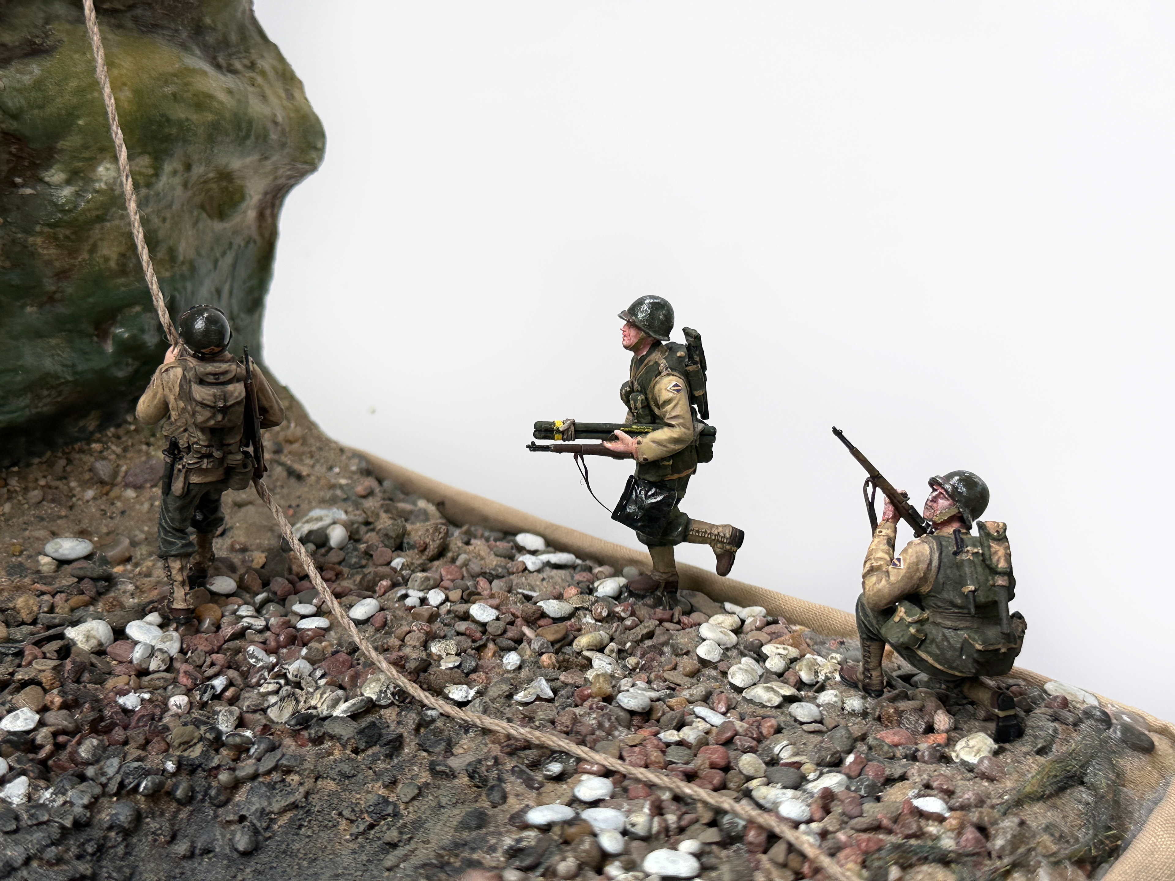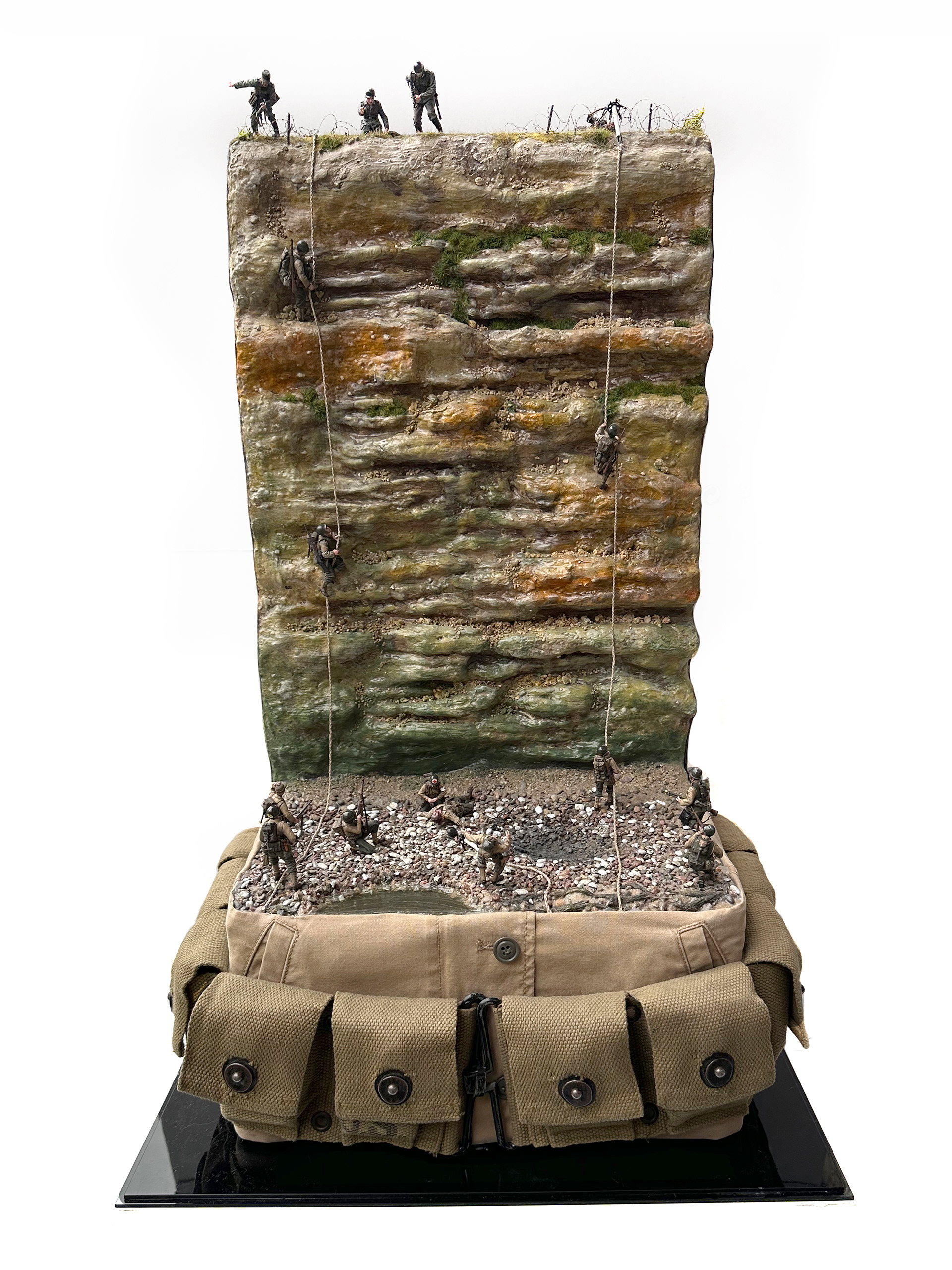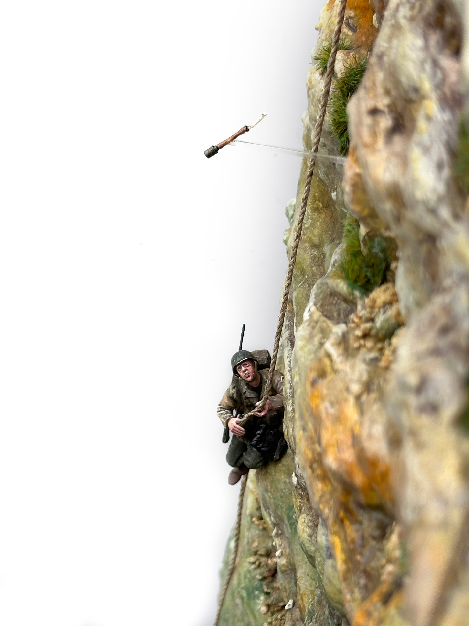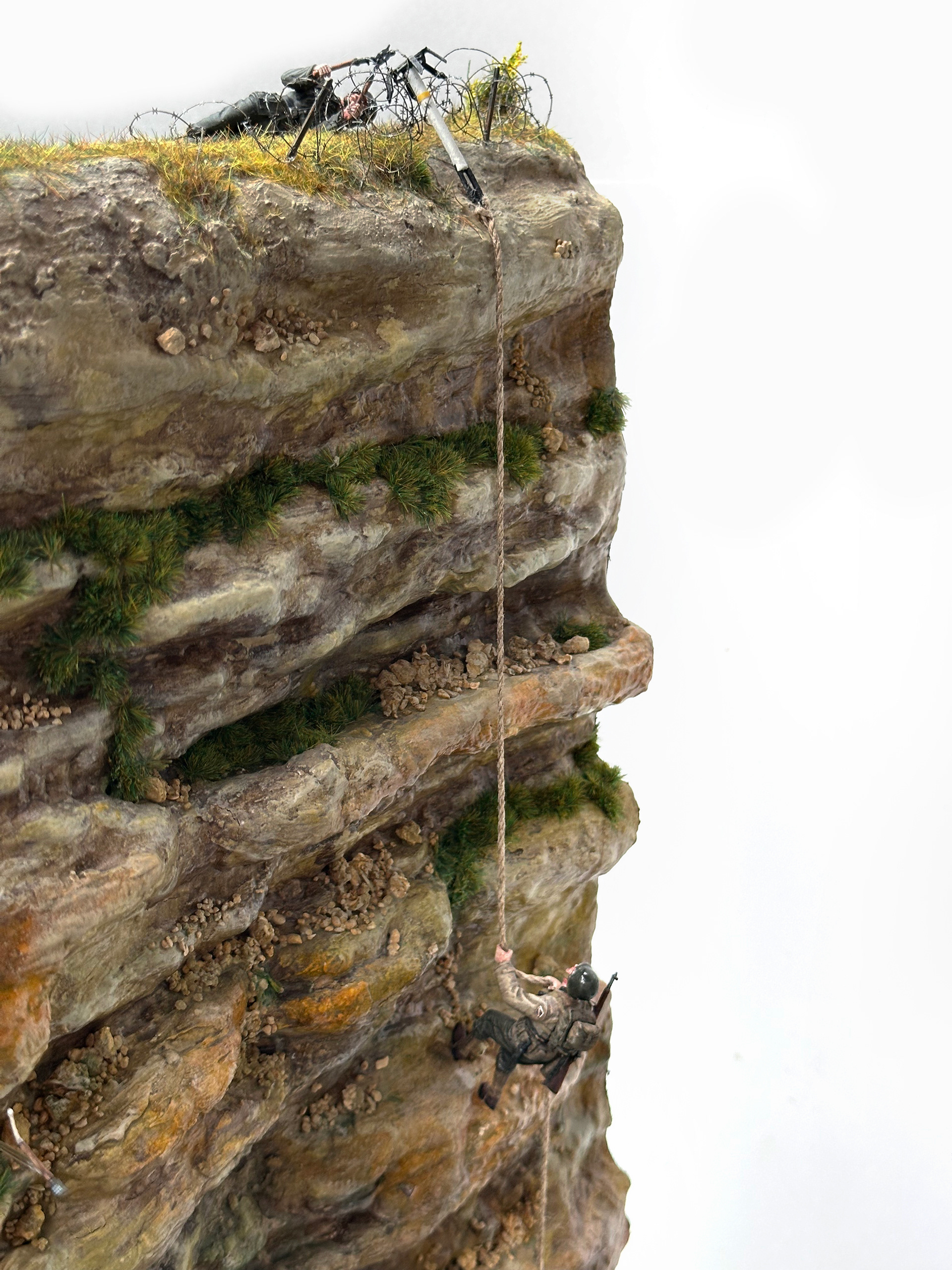 Depiction of the US 2nd Rangers landing at Pointe-du-Hoc and scaling one of the cliff faces while under fire from the startled German defenders above on the morning of the D-Day landings, June 6th, 1944.