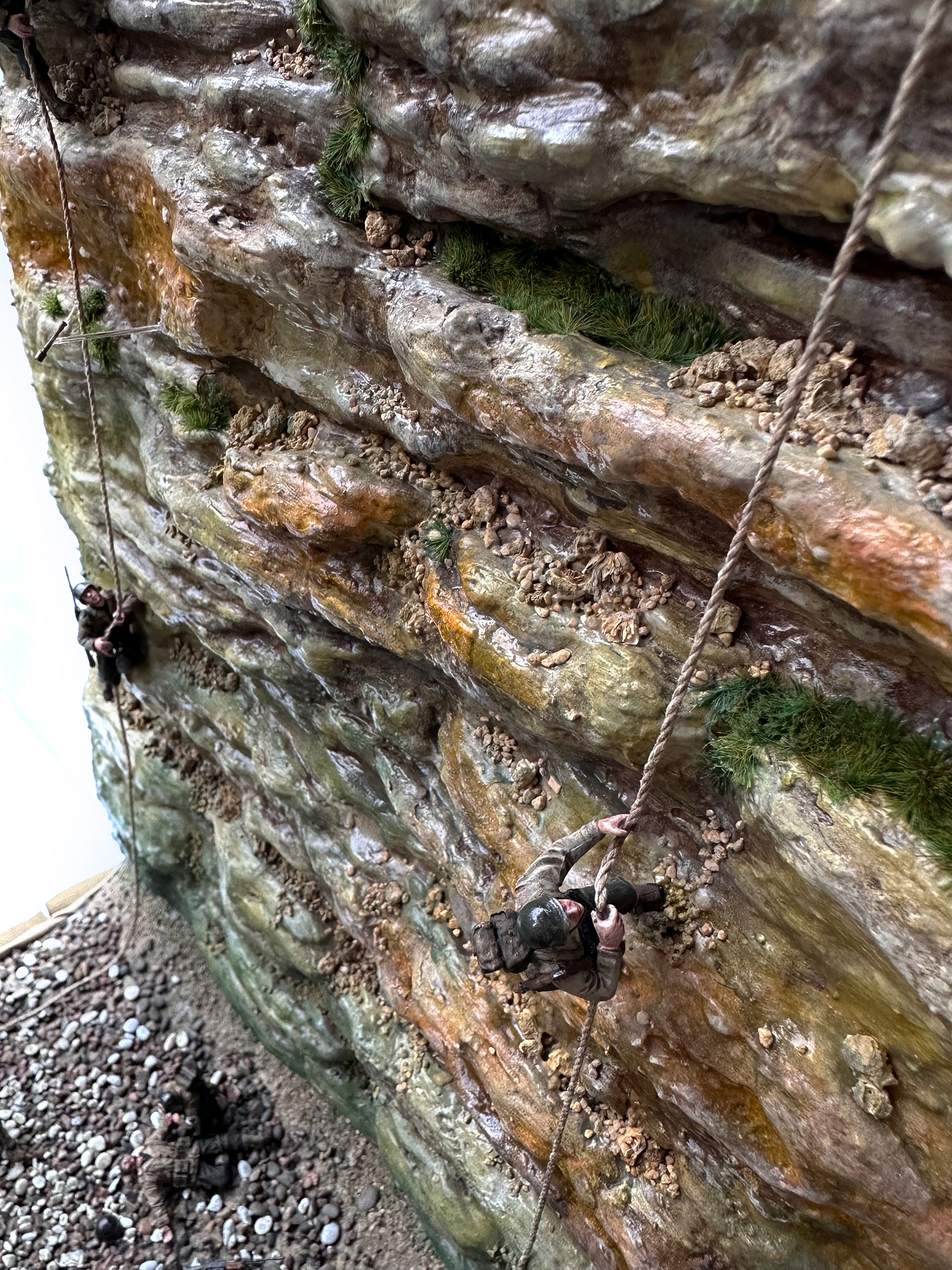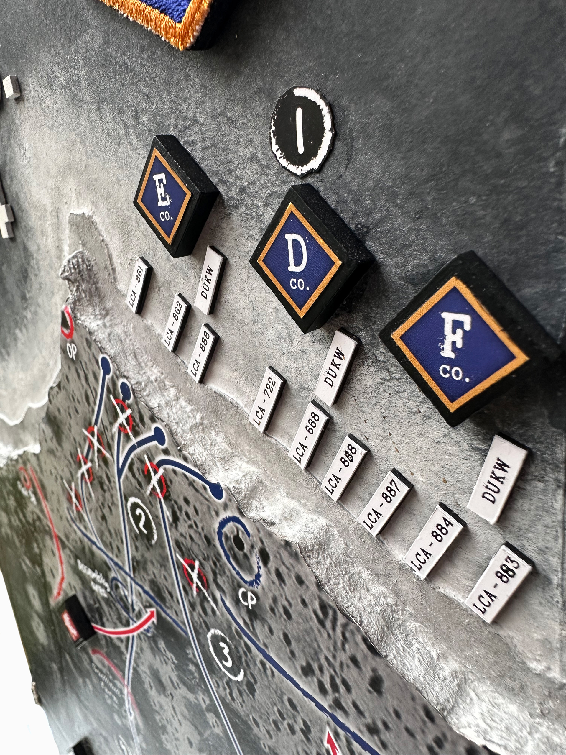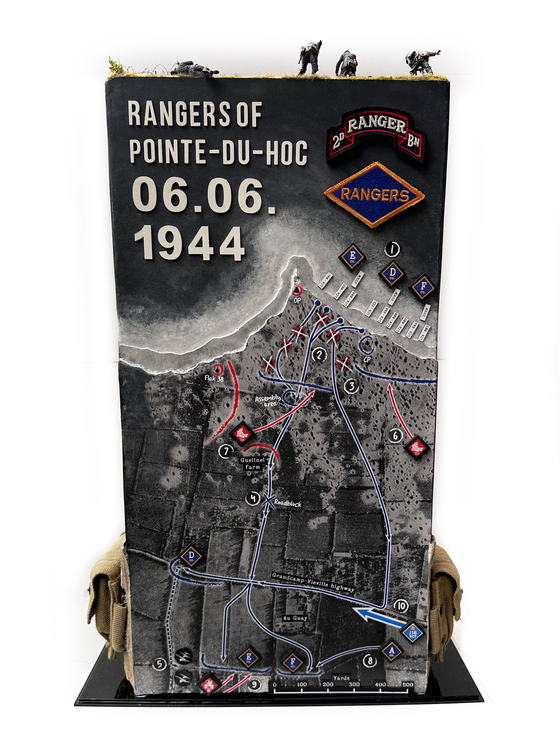 Back of the diorama was created into a relief map of the pointe with distinguishable coastal features along with an aerial map of the area and notable events that took place following the landings.
