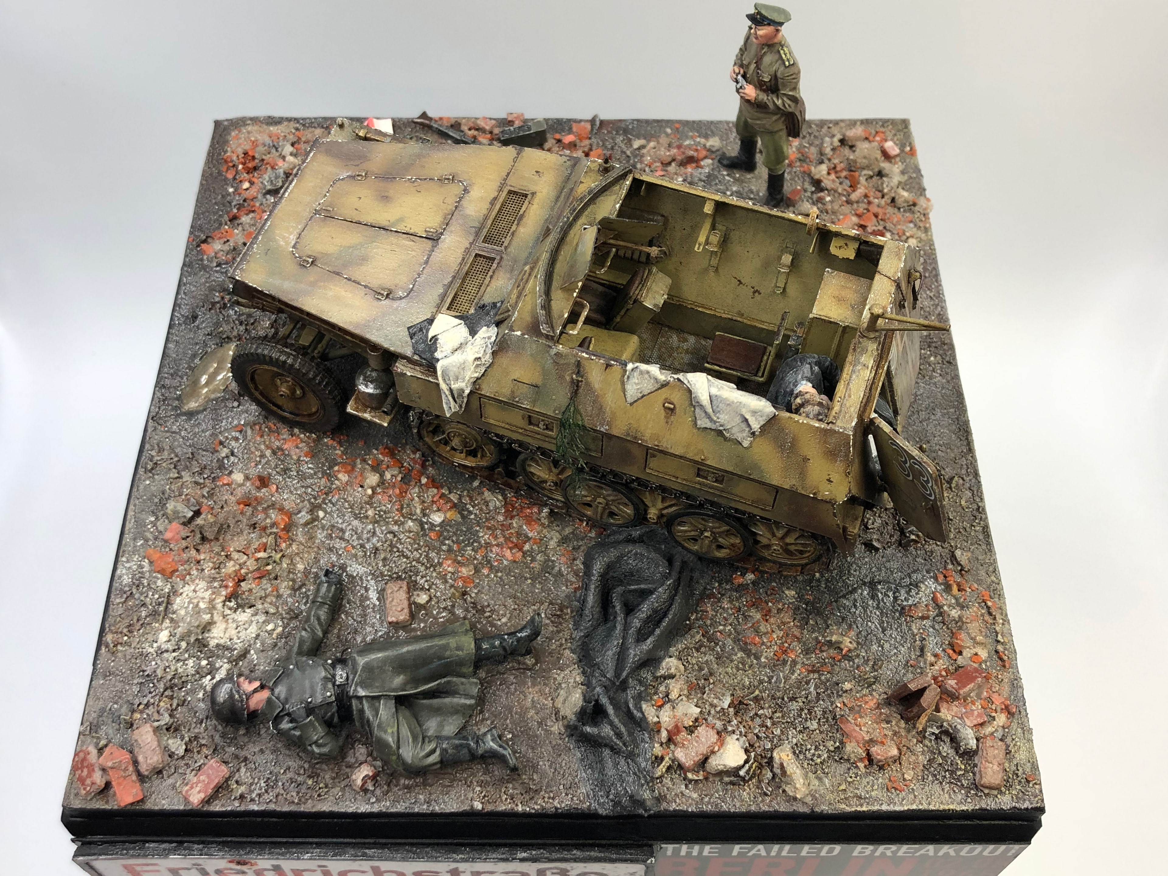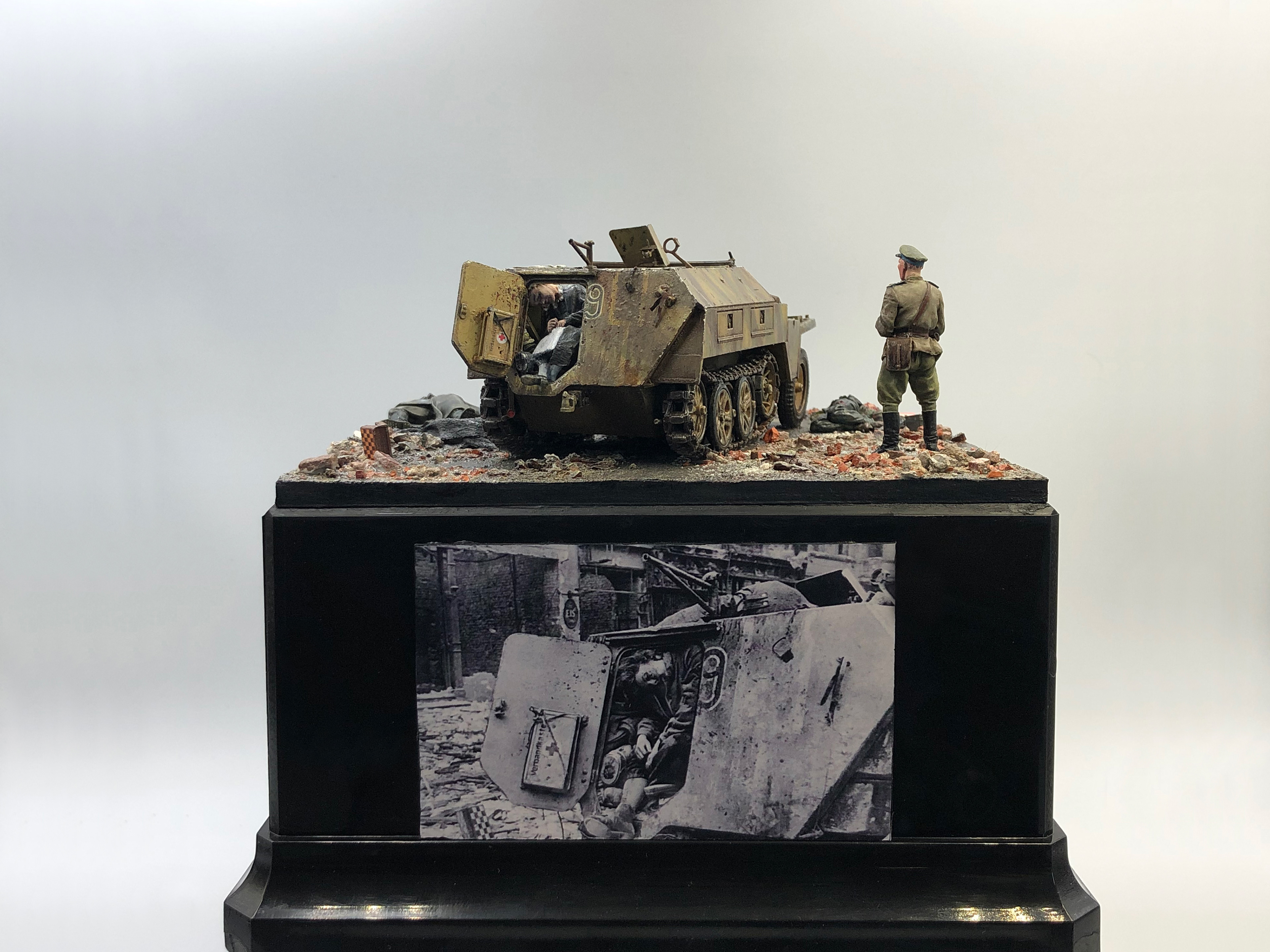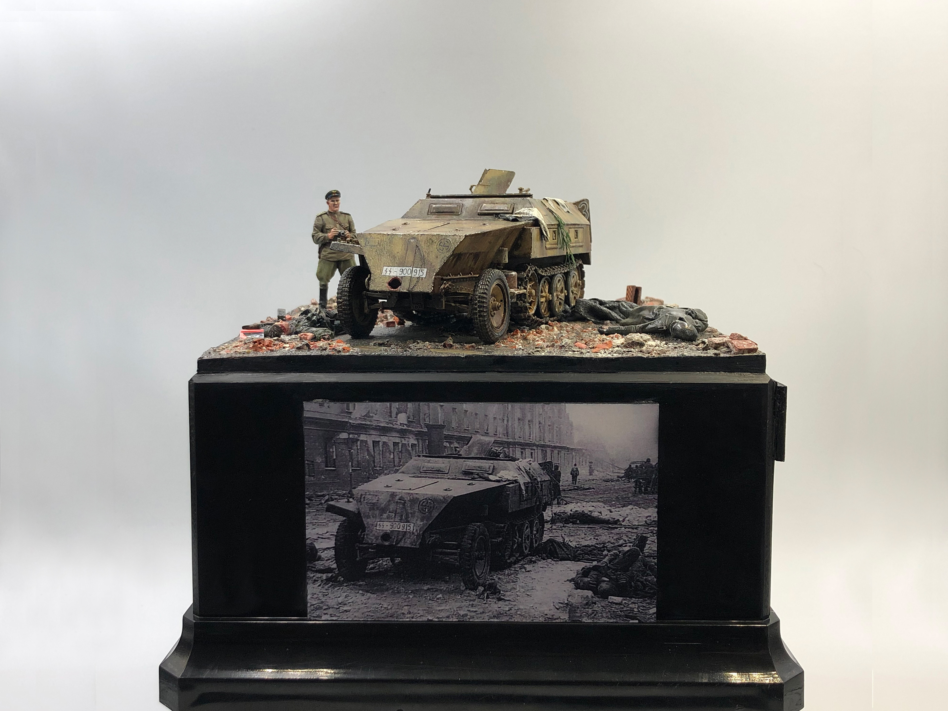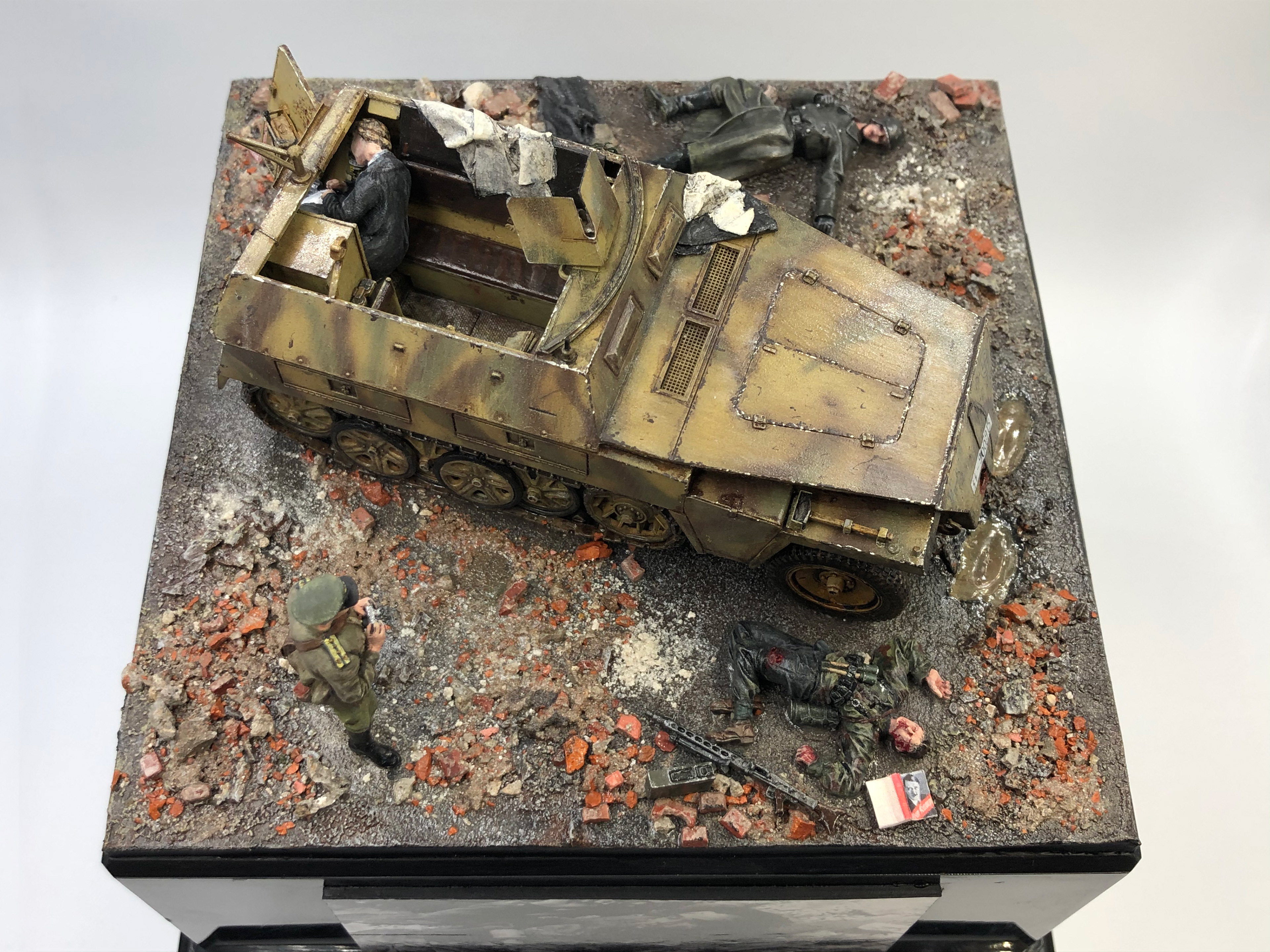 Vignette of a well-known photograph taken during the last days of the Battle of Berlin, 1945. The scene depicts a segment from the aftermath of failed breakout attempt along Friedrichstraße by the 11th SS Panzer Grenadier Division 'NORDLAND' in a desperate, last-ditch attempt to break out of the encircled city. The result was a massacre.